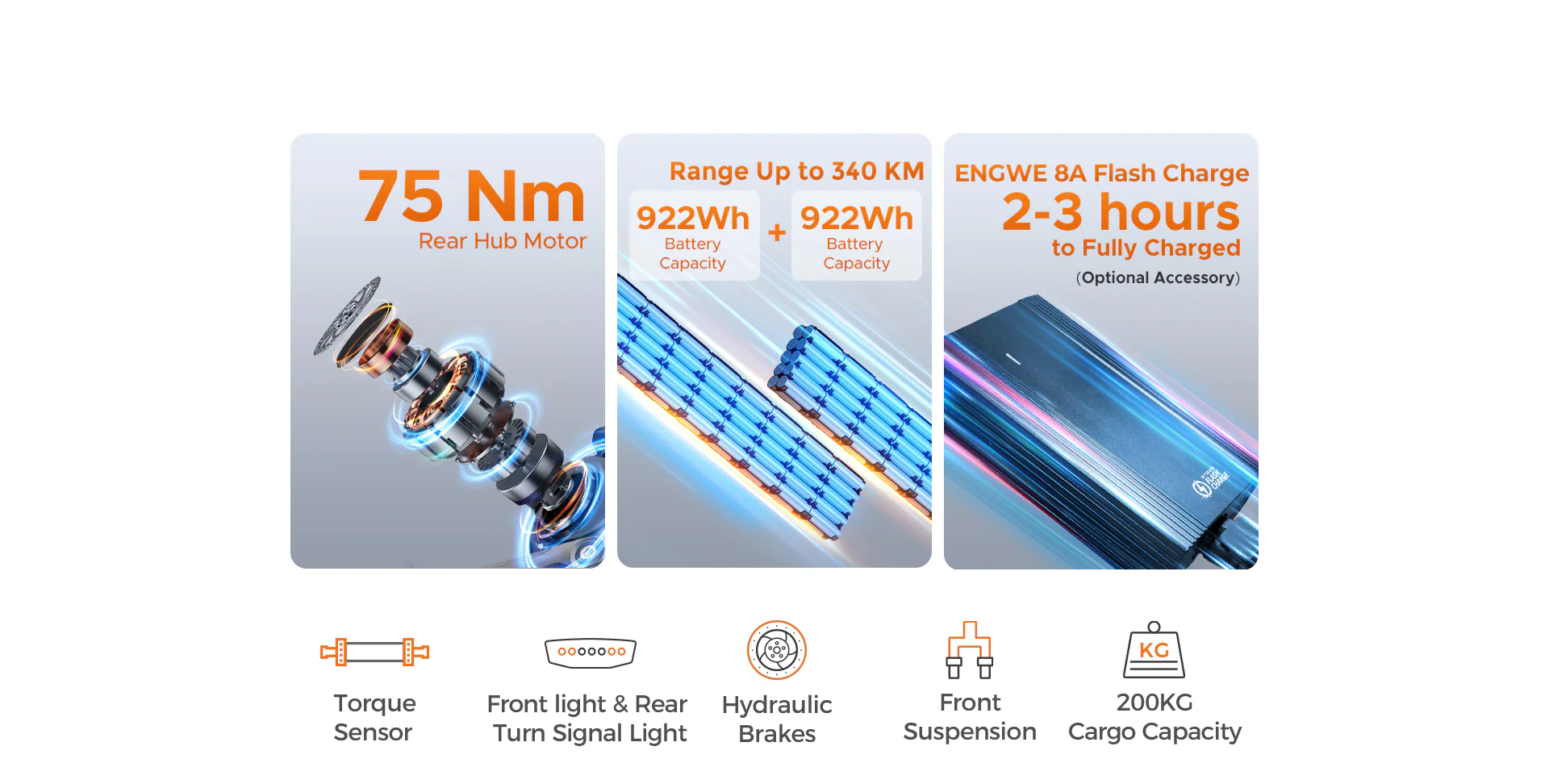 Carry up to 200KG (440LB) with confidence, making the LE20 a perfect solution for families, deliveries, and businesses.