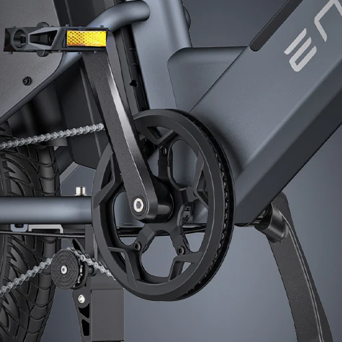 The torque sensor is an advanced transmission technology that detects your pedaling cadence, adapts to your effort, and boosts your power, helping conserve battery life and extend your riding range.