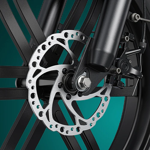 The robust front fork suspension absorbs shocks and bumps, providing a comfortable ride on rough terrains. With a travel distance of 50mm, enjoy smoother handling and better control.