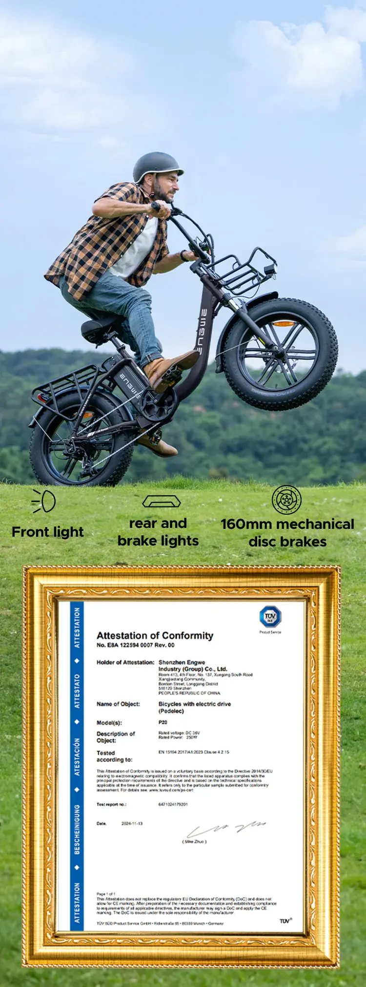The integrated rear and brake lights ensure maximum visibility and safety, automatically activating when you apply the brakes, stay visible to others even in low-light conditions.