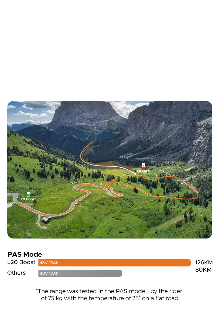 The 75Nm power boost button delivers an instant surge of power, making hill climbs and quick accelerations effortless. Engage the boost to easily tackle inclines up to 17.8% and navigate challenging terrains with confidence.
